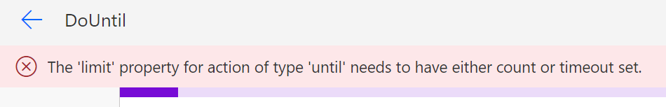However, if I try to set Count OR Timeout there is no error, so the loop will work with only ONE limit set.
